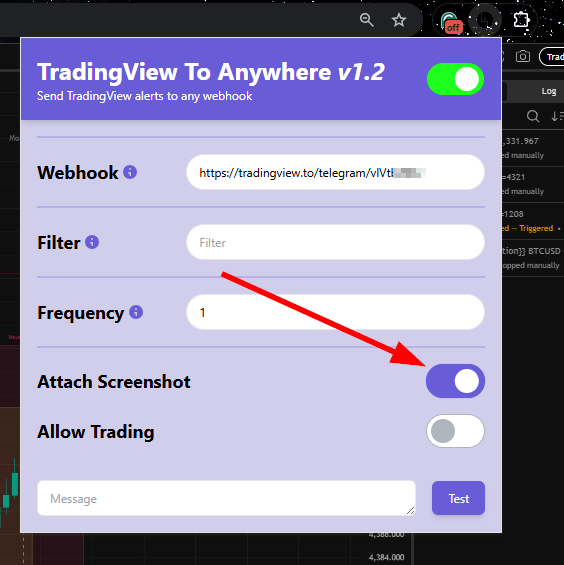 This webhook is the destination where both the alert message and the TradingView chart screenshot will be delivered.