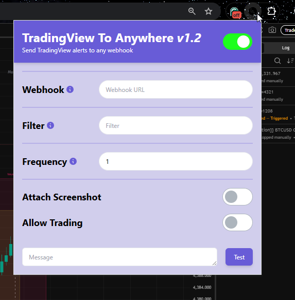 The TTA Alert Detector is a Chrome extension designed to monitor TradingView alerts in real time and forward them to any supported webhook endpoint. When the Attach Screenshot option is enabled, the extension captures the active TradingView chart and sends it together with the alert message.